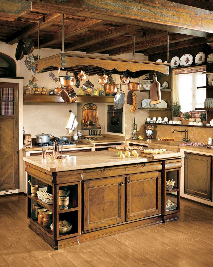 The hood of Old Style kitchen, considered as a real architectural element, represents the celebration of an elegant retro style. The wooden shaped hood, available in masonry with wooden beam too, reveals as the protagonist of the style of this kitchen expressing aesthetic preciousness and careful designing.