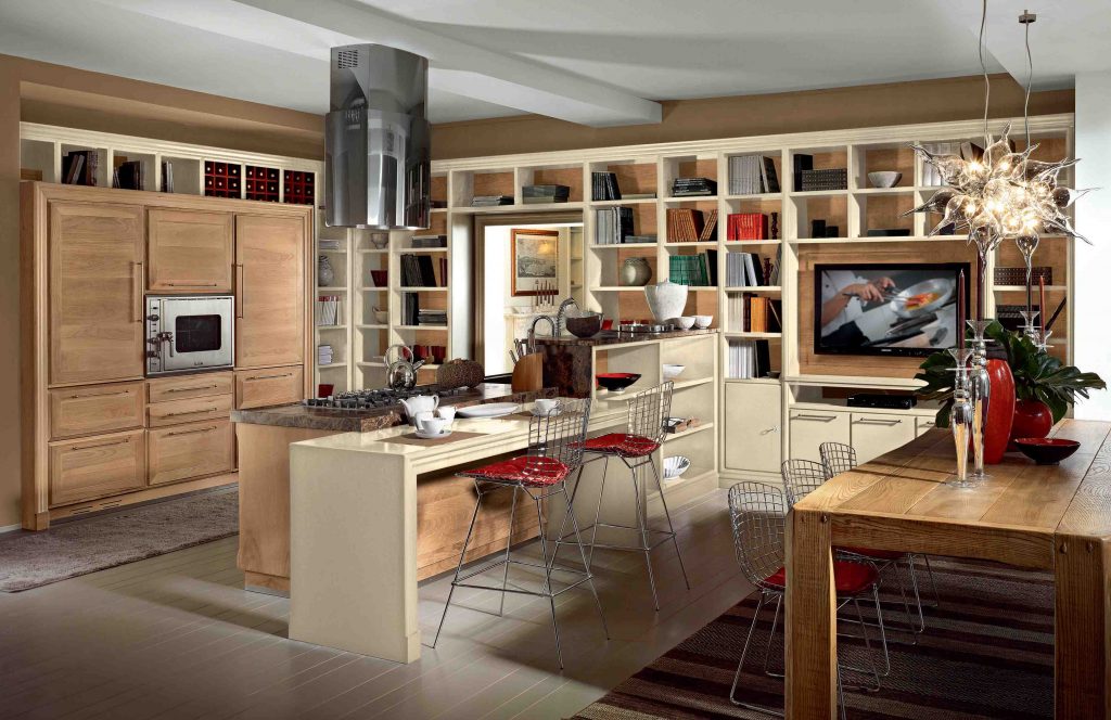 With Evita, open compartments, book shelves and shelves harmoniously complete each other matching the kitchen finishing or, chromatically contrasting them, to create spaces where functionality and originality elegantly live together.