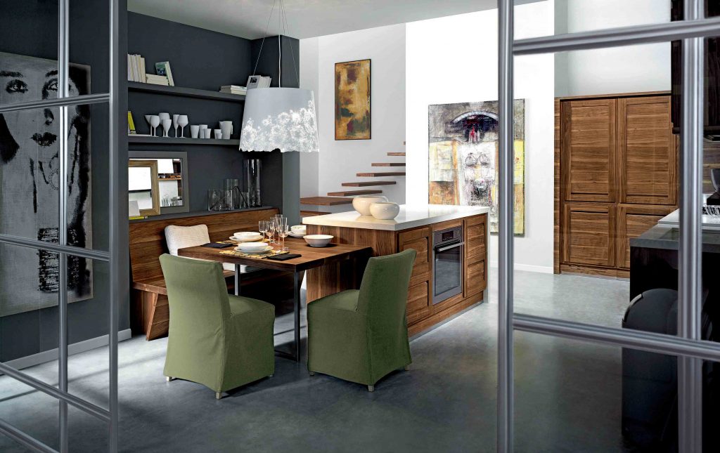 The kitchens of Canaletto collection show a great design versatility: kitchens with island or peninsula meet original solutions which include tables coordinated with chairs, Calendario open compartments and real technologically advanced wine cellars.