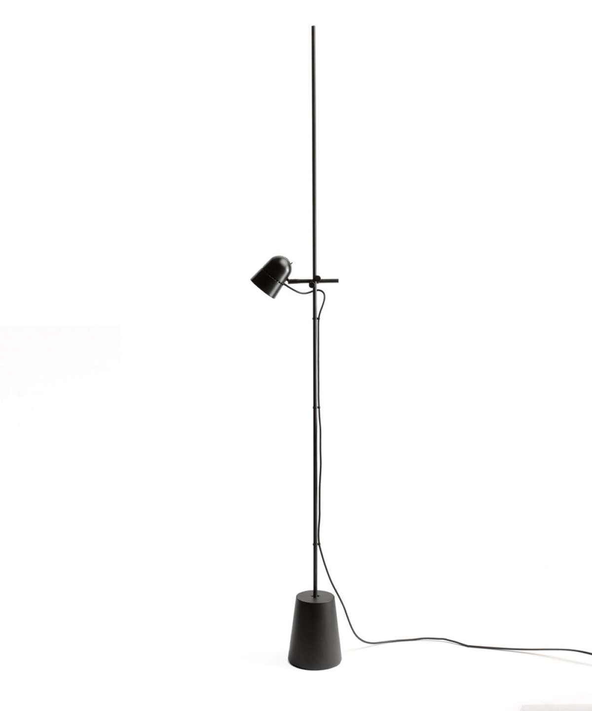 In the floor version, Counterbalance conserves the characteristic aluminium cap, height-adjustable thanks to a simple sliding mechanism on the stem.