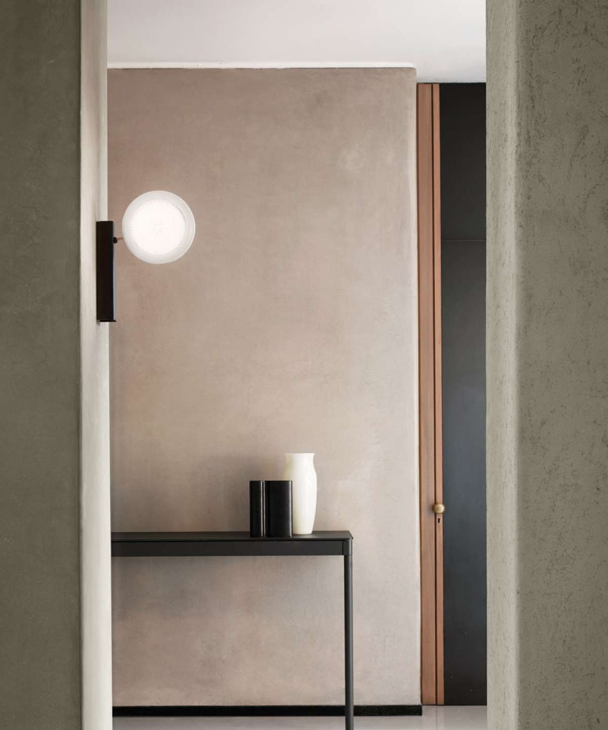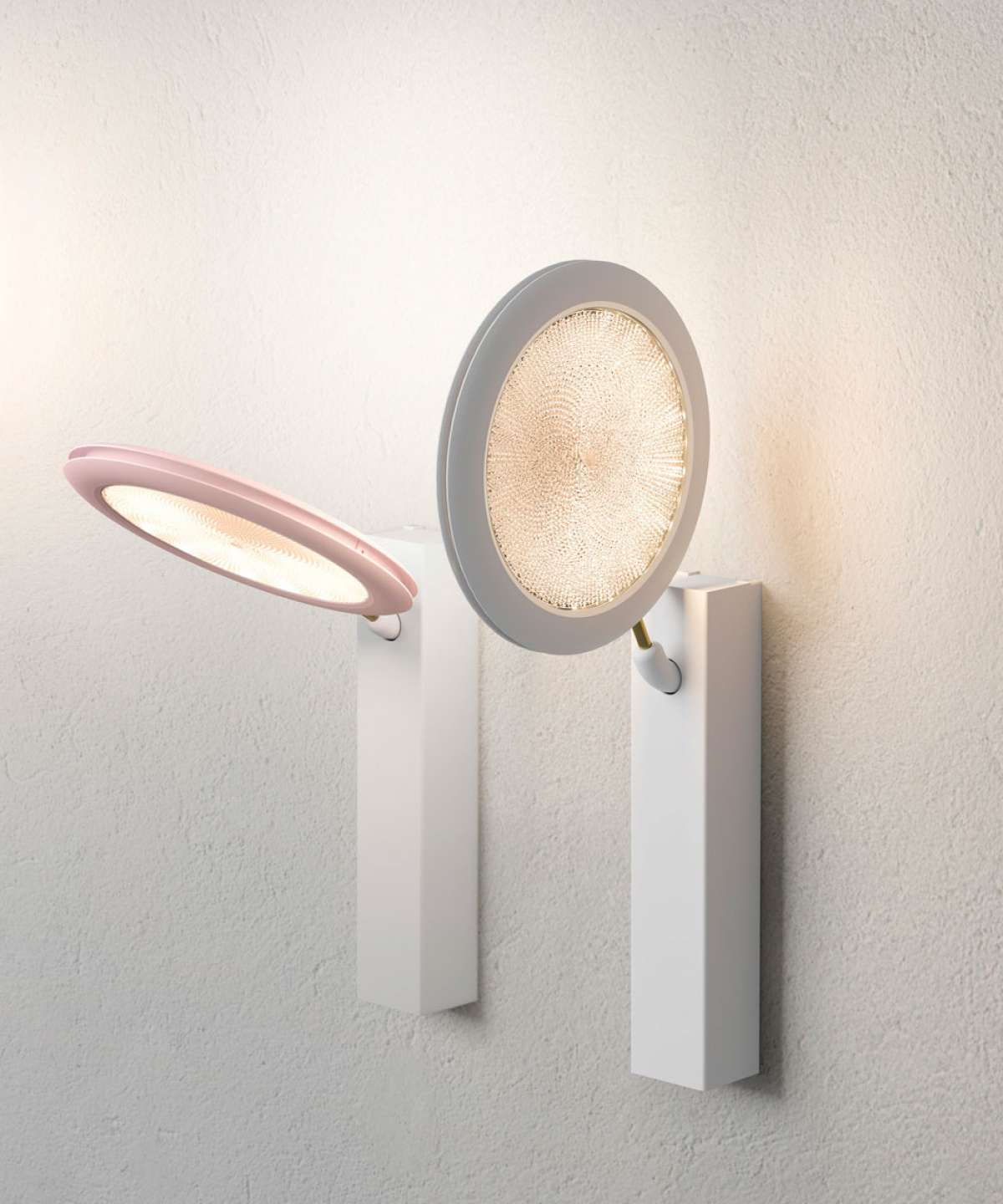 An ultraflat luminous disk, adjustable by 360° in space. Fly-too is an LED wall lamp that generates perfect bidirectional floodlighting. The methacrylate lens features a system for recovery of marginal light flow.