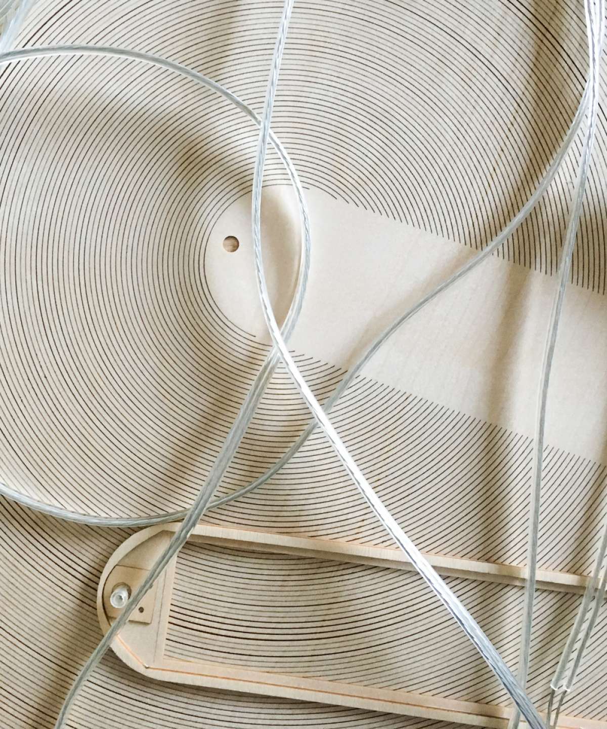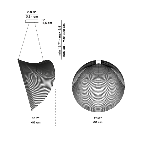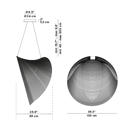 The lamp is composed of a very light body made with extremely thin, flexible plywood certified FSC?, cut by laser along densely packed equidistant lines. This is a precious and varying material whose unique natural character can be seen in the typical grain pattern. These characteristics are the distinctive features of the project. Once suspended from the ceiling, Illan takes on volume thanks to the force of gravity and assumes its characteristic form that floats in the air.