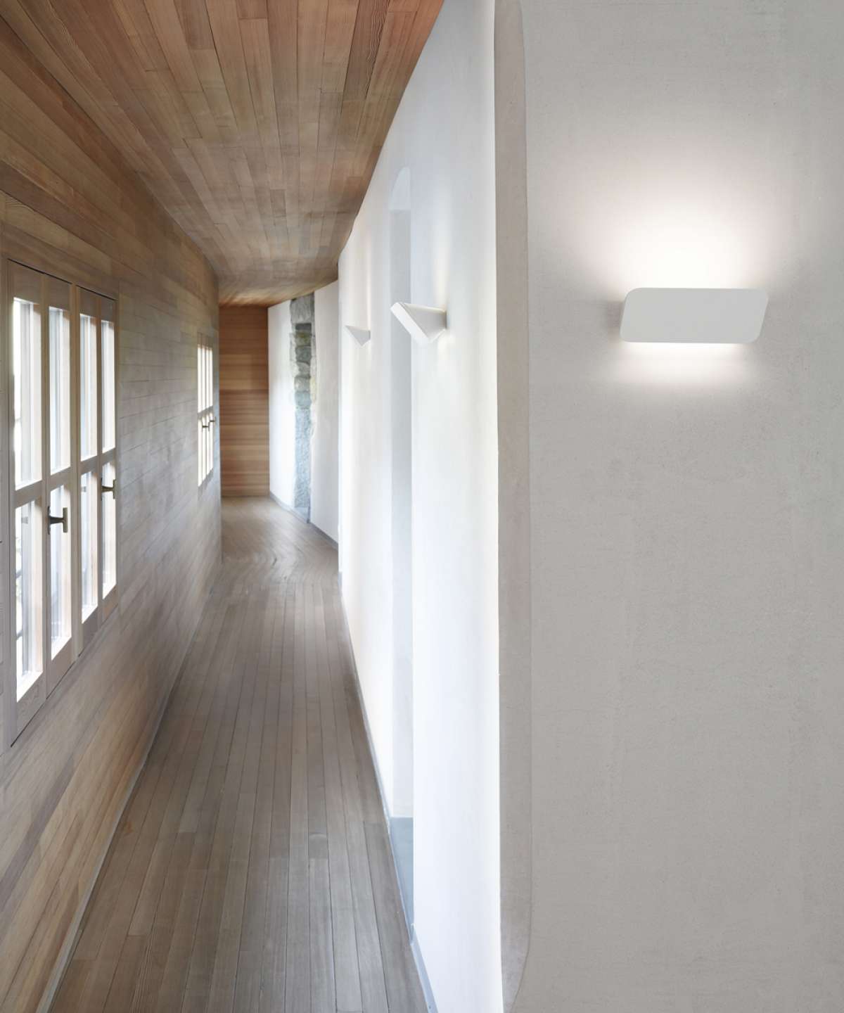 Lane is an aluminium strip that encloses and at the same time releases pleasant indirect light, upward and downward on the wall. Sleek and essential, the lamp comes in different lengths, depending on the light source.