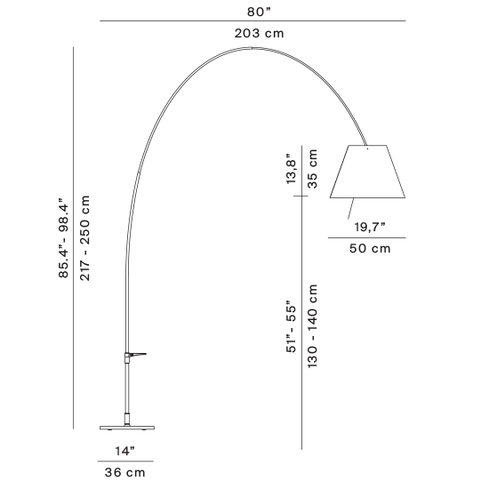 The telescopic stem and 360° rotation on the base give Lady Costanza elegant poise and flexibility, allowing the user to easily adjust the height and direction of the light. The extraordinarily limited weight of the structure and the handle on the base facilitate movement.