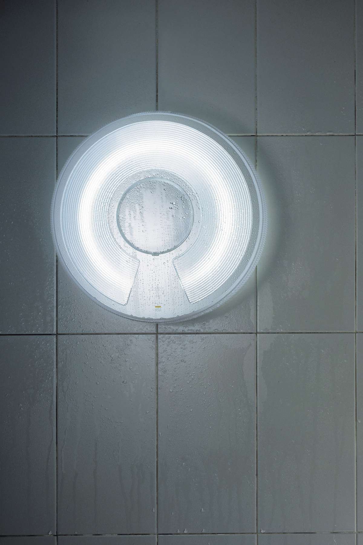 A luminous disk of polycarbonate, a brilliant design. A basic form, the circle, creates seductive lighting effects with a seamless series of reflections refractions, producing soft, enveloping fluorescent light. For the wall or ceiling, or in the suspension version, Lightdisc offers a simple response to any type of functional complexity. Slim and essential, Lightdisc is composed of two injectionmolded polycarbonate shells. Its thickness reduced to a minimum and its understated design make it an ideal choice for any context.