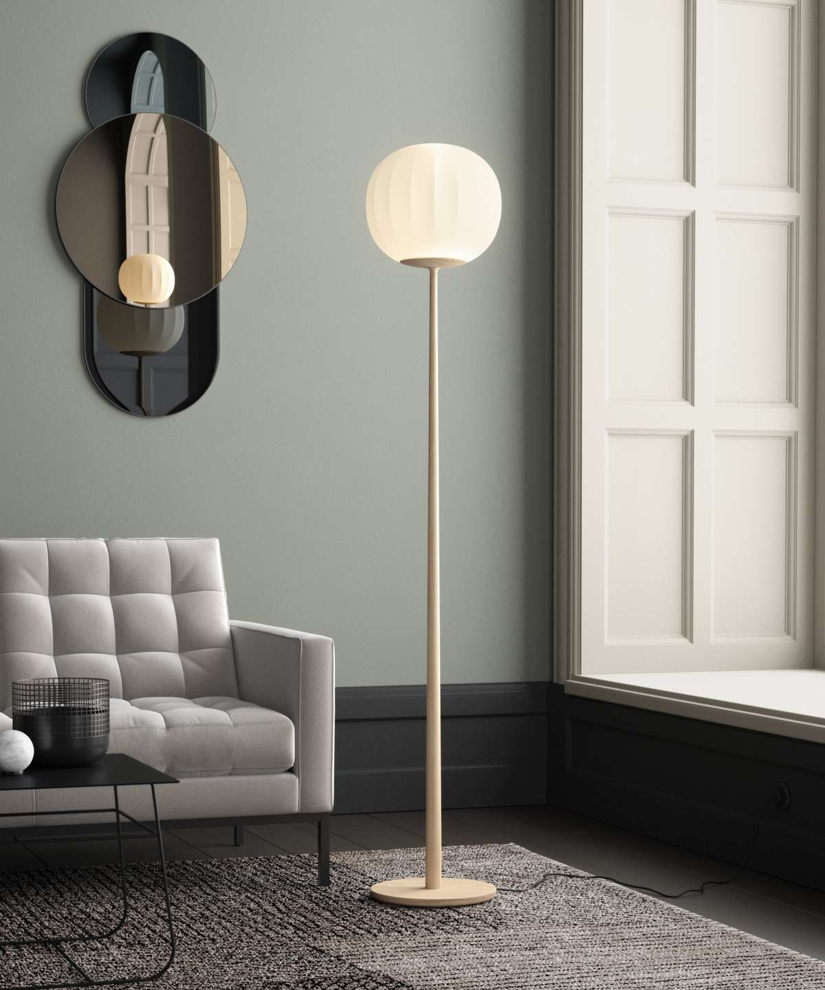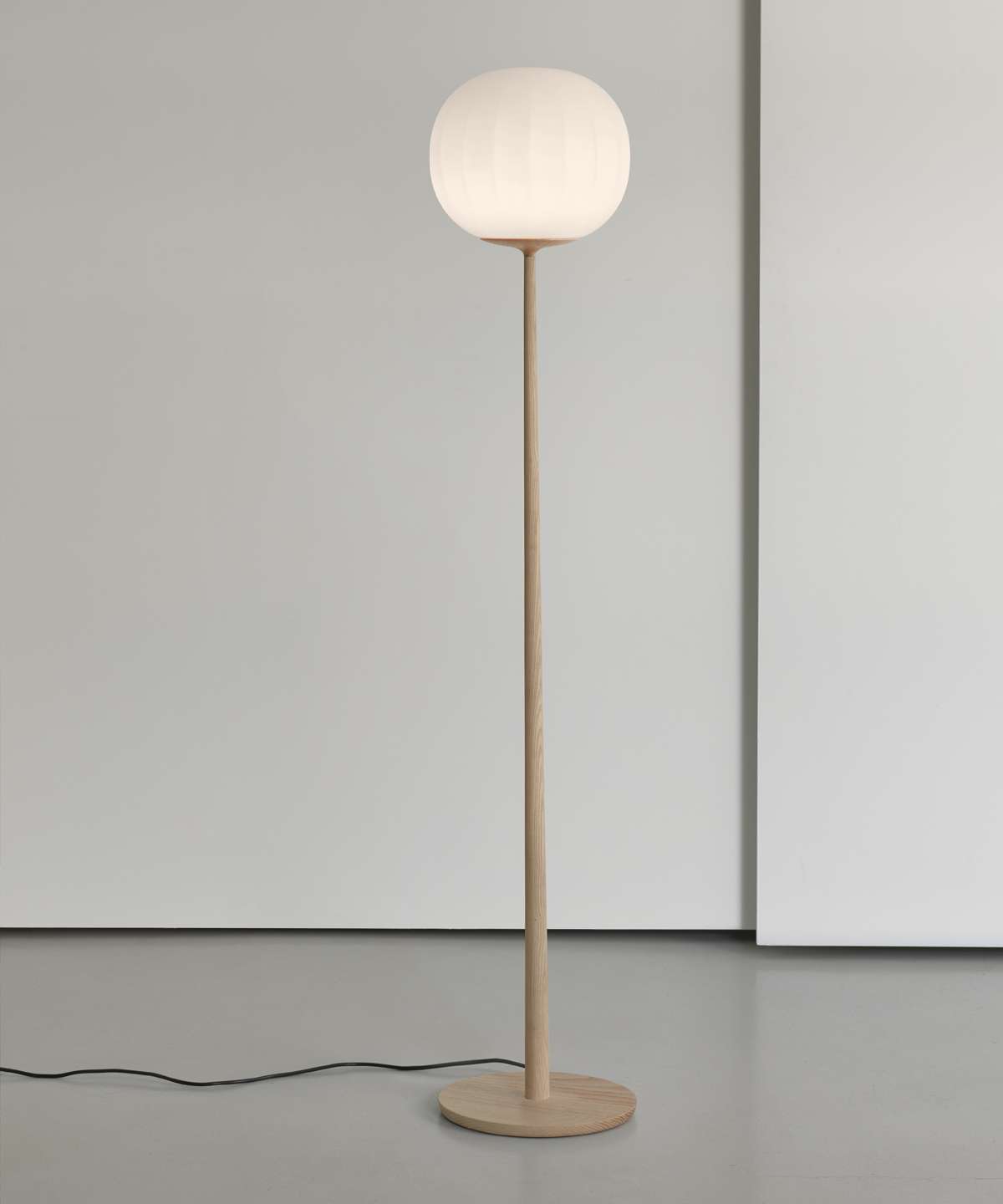 The diffuser in opaline blown glass – whose surface is scanned by the repetition of slight vertical cusps that vanish at the extremities – is combined with a wooden structure, making Lita a product with a forceful material character.