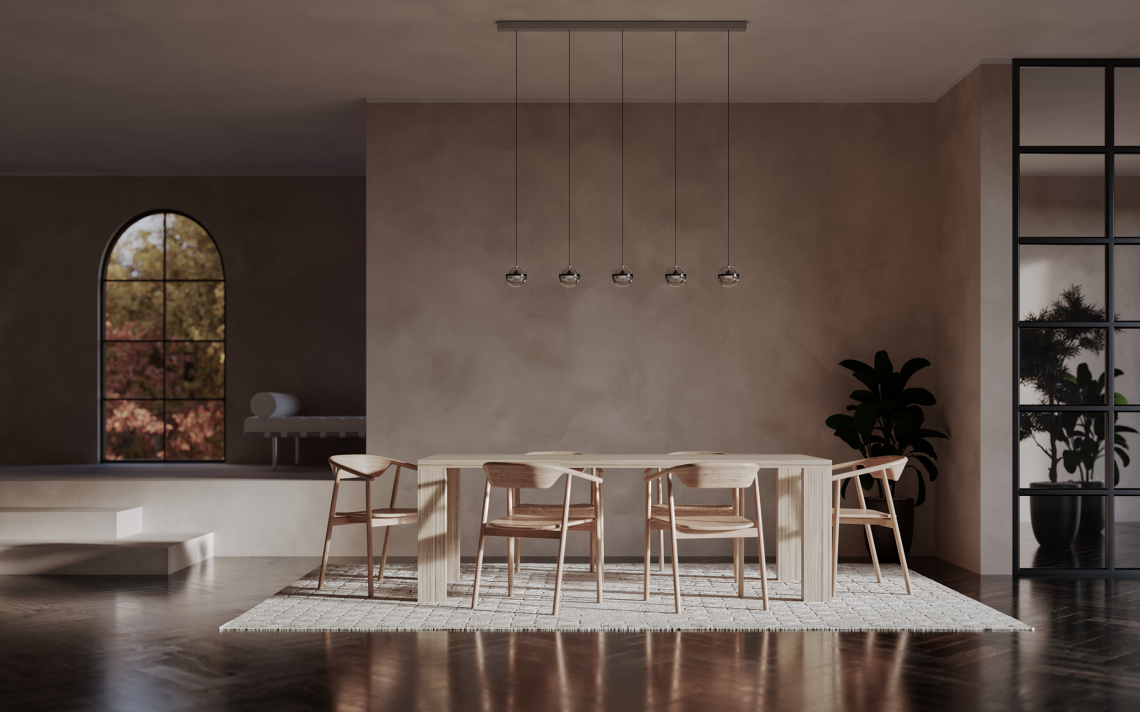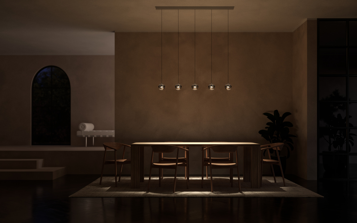 Adaptable to installation spaces, it can be used to illuminate tables, centerpieces or countertops displays in both residential and public settings.