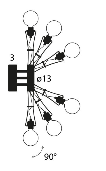 a pendant lamp whose huge expressive impact lies in the original composition of its eight thin steel arms. Tracing the shape of a star, they look like a mechanical octopus with E27 lightbulb fittings on the ends of its ‘tentacles’. In this way, light is emitted in all directions.