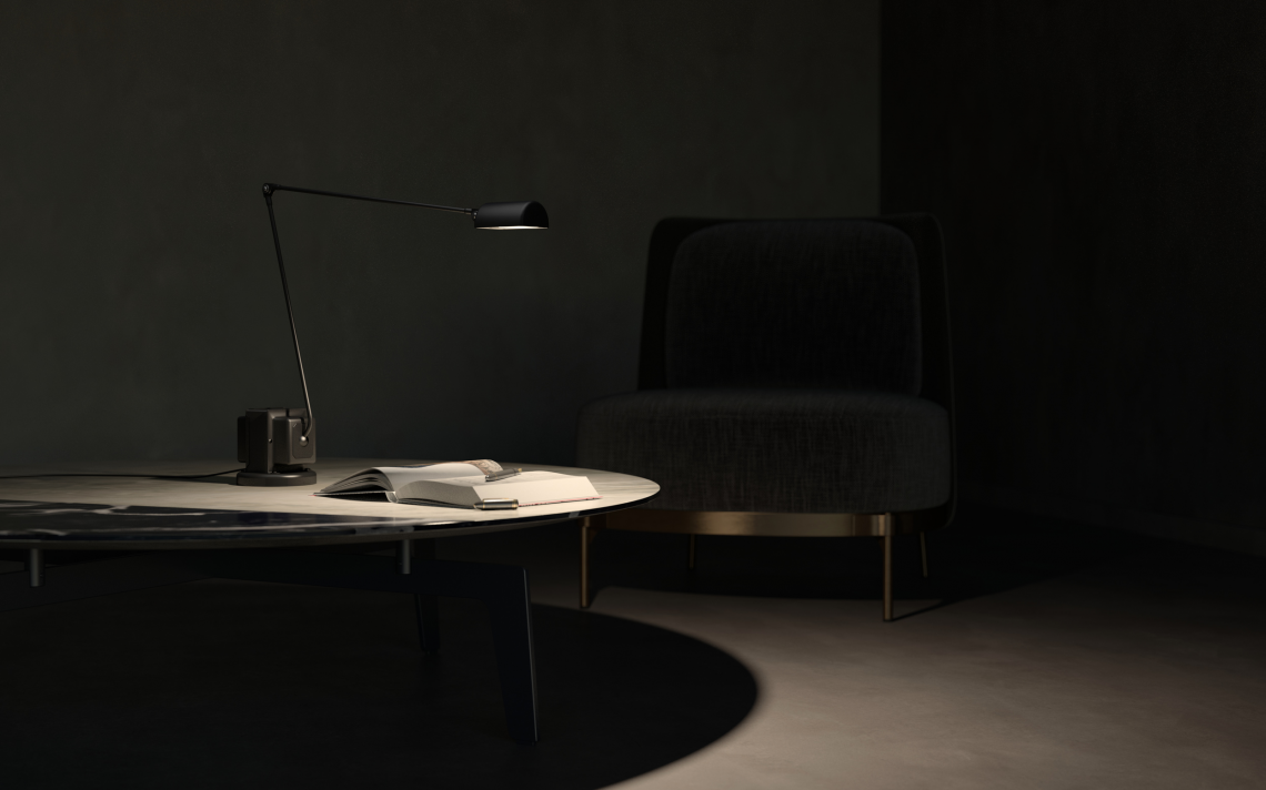 Tried and tested throughout its long production history, this lamp lends itself to countless uses in public and private places, from reading desks in libraries to pianos, from jewellery display counters to top fashion brand shop windows.