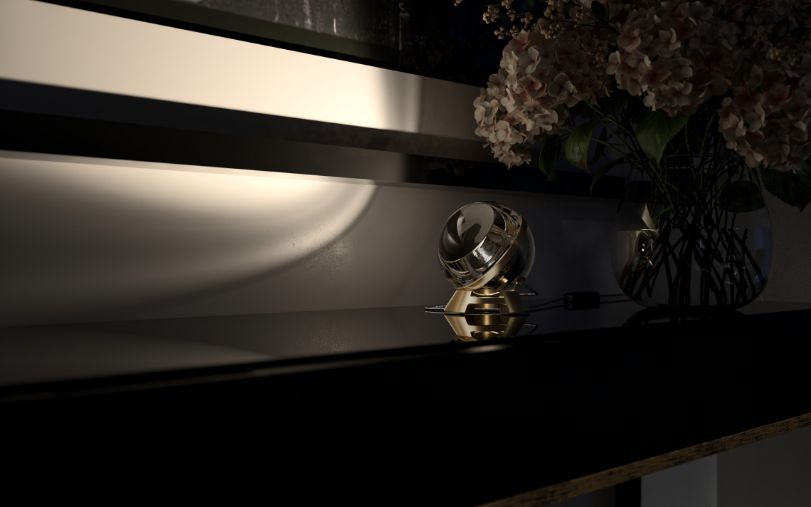 A small turned aluminum base houses the Limbus body, thus giving the lamp the ability to direct the light beam in all directions.