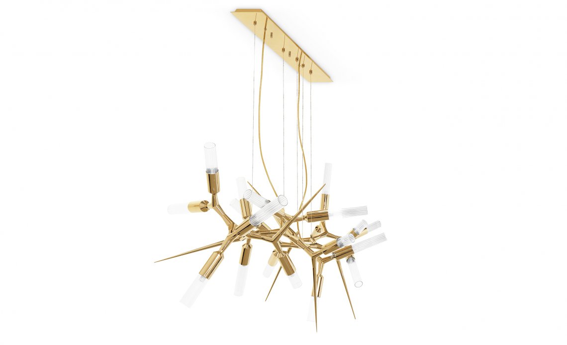 SHARD CHANDELIER吊燈Inspired by the showstopping Shard London Bridge, The Shard chandelier is a unique piece whose powerful design is akin to a work of art. Made from gold-plated brass and crystal glass, allow this Modern Chandelier to take the spotlight in your projects and you will not be disappointed.
