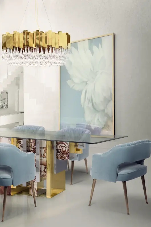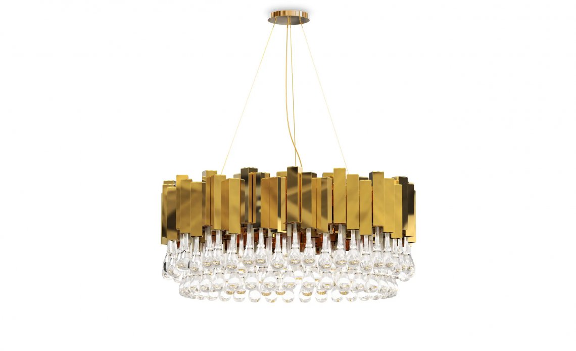 Trump Chandelier is a large gold crystal chandelier was sculpted to convey a similar aesthetic of its lineage. On top, connected gold-plated brass structures serve as the main base for an opulent crystal glass masterpiece placed underneath. Each one of these sublime glass tears was designed with high attention to detail and traditional craftsmanship techniques. The perfect luxury chandelier for a refined ambiance.