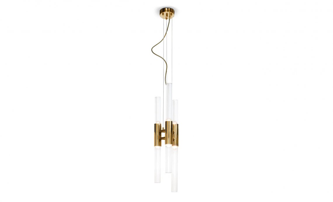 Waterfall Chandelier is made with the best handmade techniques, high-quality materials as gold-plated brass. A luxury chandelier with smooth and elegant shapes of the ribbed fine tubes of crystal glass and the extraordinary circular levels sensations of waterfalls shows the exquisite capacity of this masterpiece to fill a contemporary loft as well as a luxury lobby.
