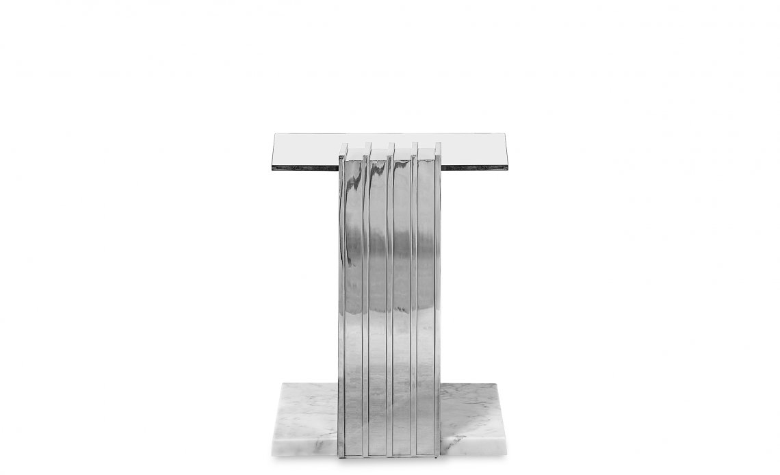 With a sublime shape, this side table is the highest proof of ultimate design. Designed with perfectly crafted marble and stainless steel, this piece creates a unique and sophisticated touch as a patio furniture. A fascinating and exclusive outdoor piece that exhales luxury and style. The Vertigo Side Table is the definition of a luxurious outdoor experience.