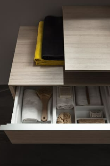 Tall cabinet 'slim' with open front, 4 shelves