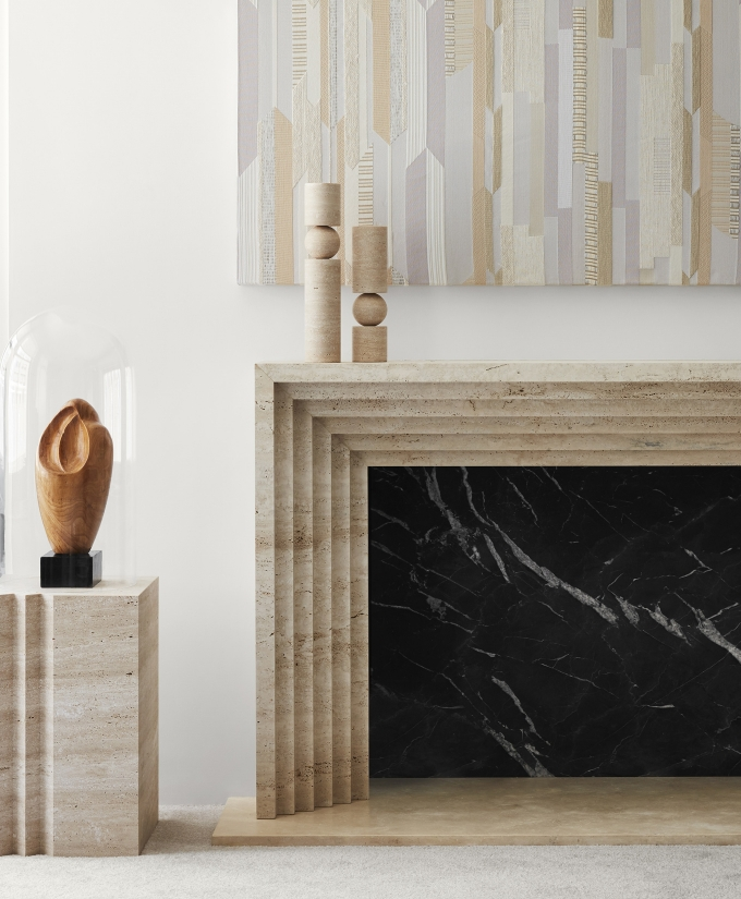 A new version of the Fulcrum candlestick has also been reimagined in a tactile, rough-hewn solid travertine. A play on the concept of pivots and supports, Fulcrum is a sculptural and monolithic candlestick whose cylindrical stem appears to balance on a central sphere.