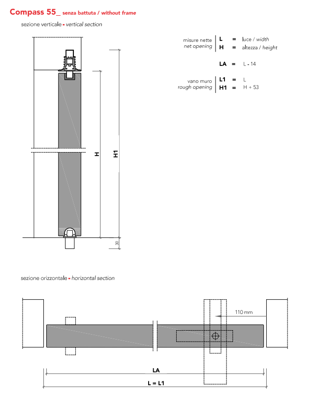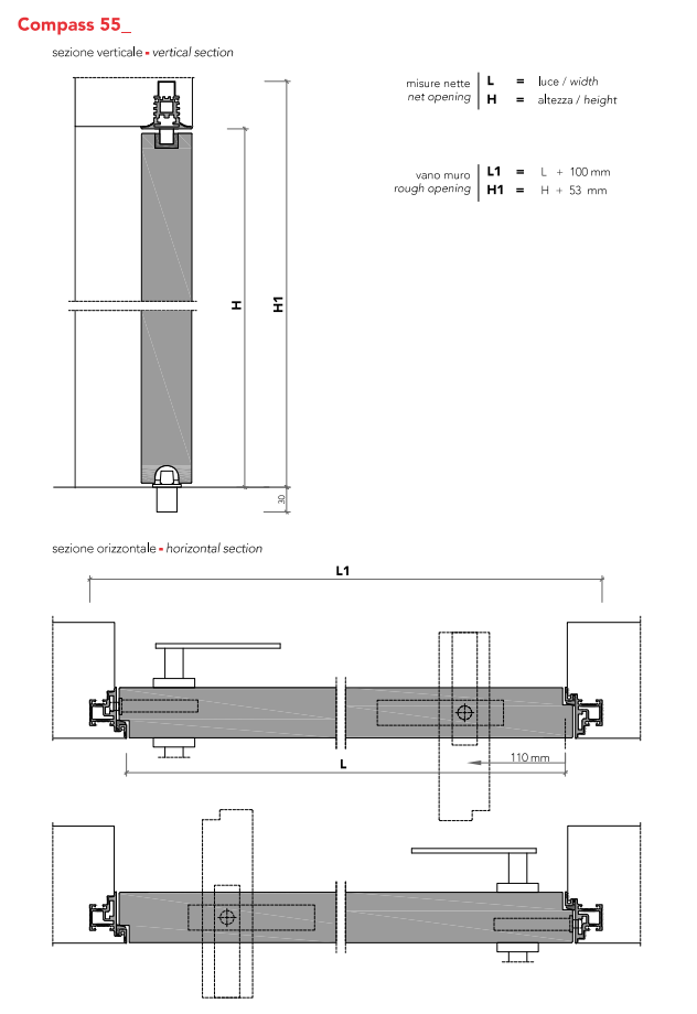 Perfectly aligned and equipped with a pivoting door, Compass can be compared to a large, silent stage curtain, enabling areas to communicate with lightness.