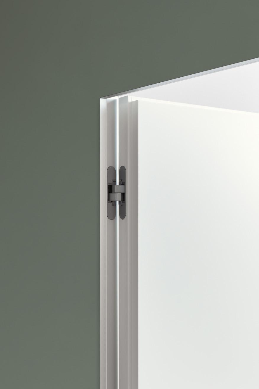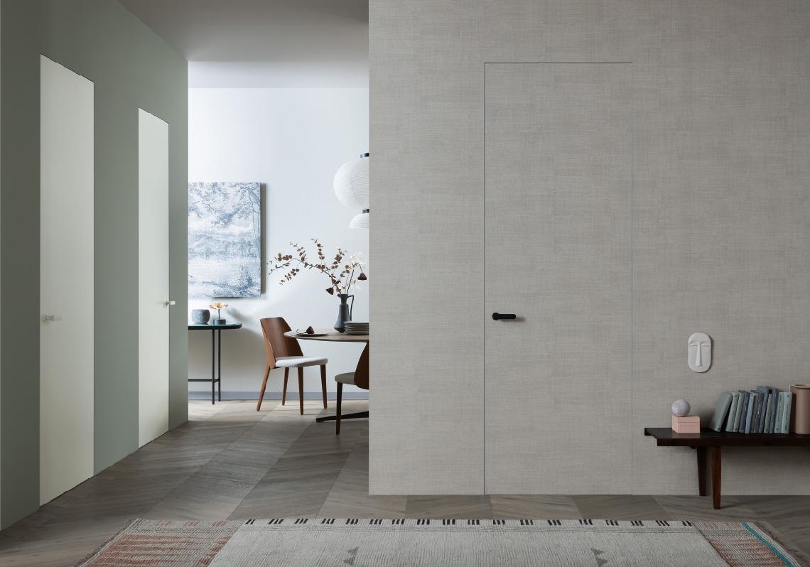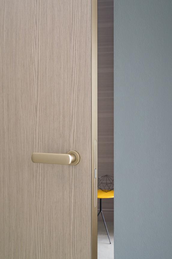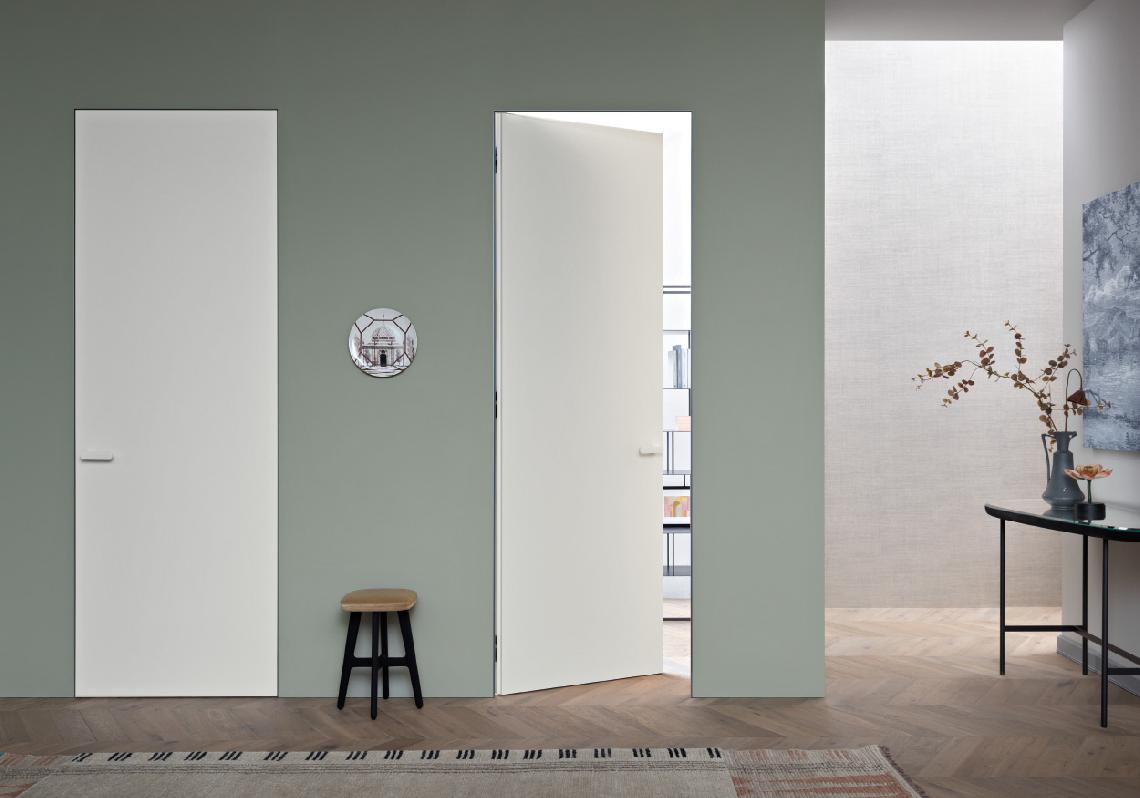 This is the natural evolution of the celebrated model Rasomuro, borrowing and embellishing the technical features that were so key to its success. Thanks to the concealed hinging, the substantial thickness and the invisible aluminium doorjamb, this model is able to assimilate perfectly with the wall. The glass version, the purest of materials, this door demonstrates its own aestehetic originality and its unique features of transparency, luminosity and lightness.