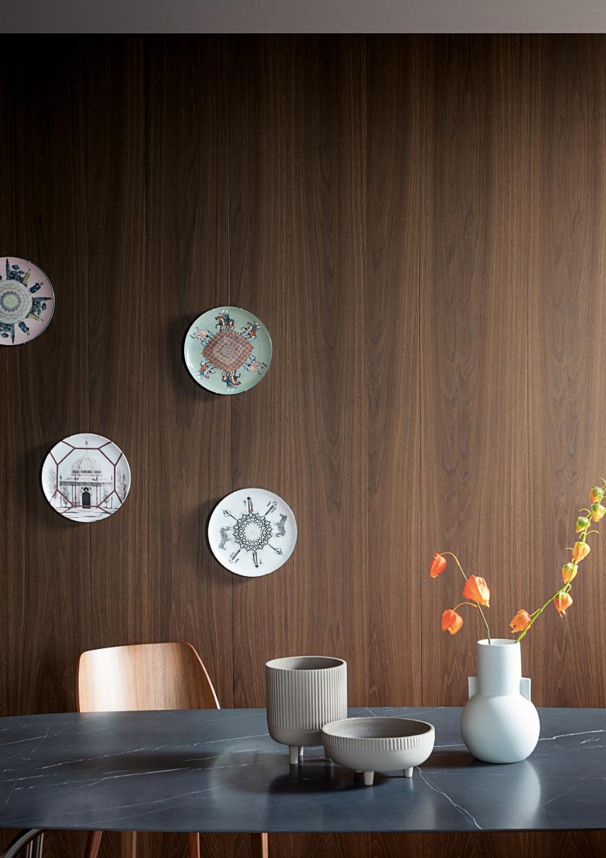 Nobile soluzione decorativa e di antica tradizione storica, la boiseire è interpretata in termini contemporanei divenendo un elemento architettonico scenografico capace di dare identità e calore agli ambienti.