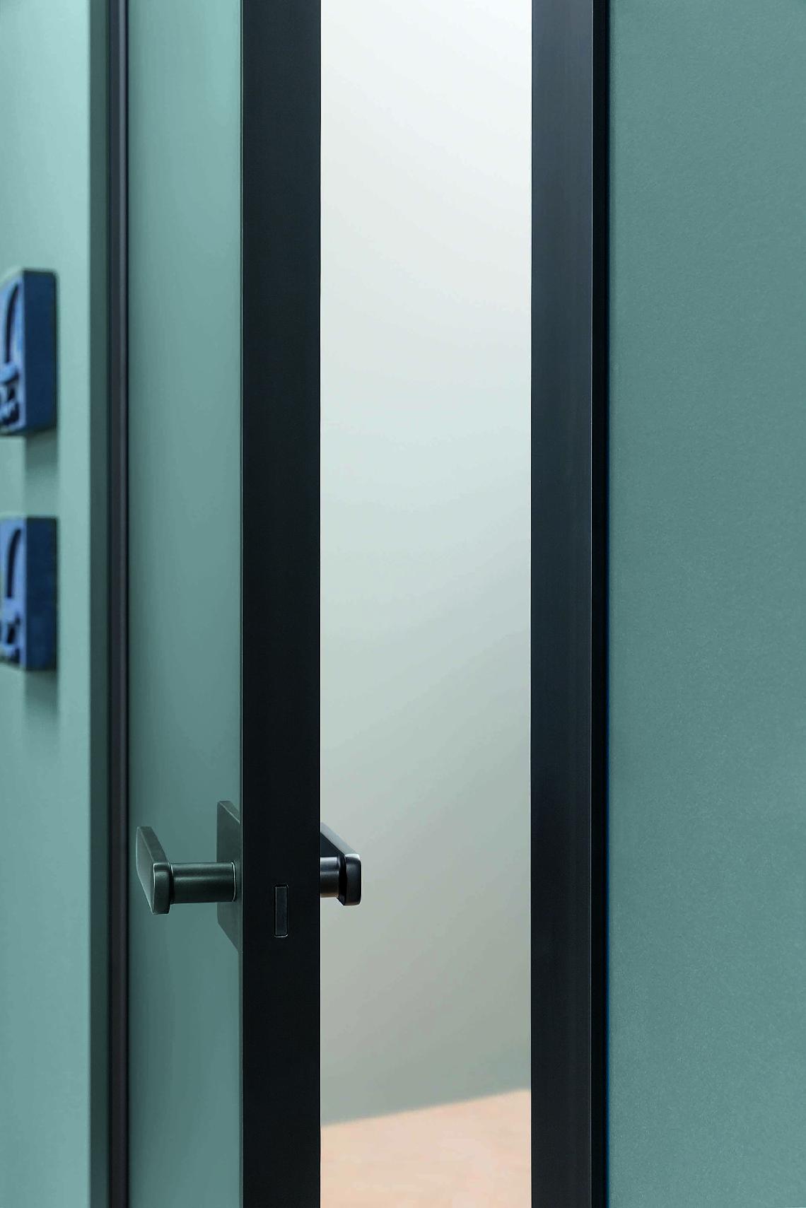 The L7 Large hinged door is contemporary in its conception, use of materials and technologies, but classic in its aesthetics. With its clean and sober form, it lends itself to furnishing the most diverse settings thanks to a choice of finishes that play with the light and the transparency of glass and the sophisticated elegance of metal.