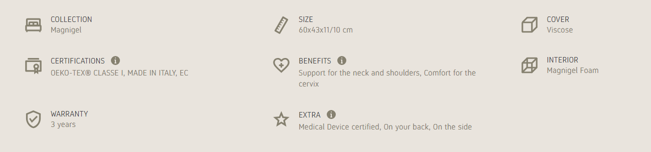 New Magnigel Deluxe Wave of the Magnigel line is an ergonomically shaped pillow with asymmetric double wave that supports the neck and relaxes the tendons. The interior made of innovative Magnigel and the Viscose cover are sure to always provide a fresh support. Its elegant blue finish adds a touch of class to the pillow, making it even more refined.