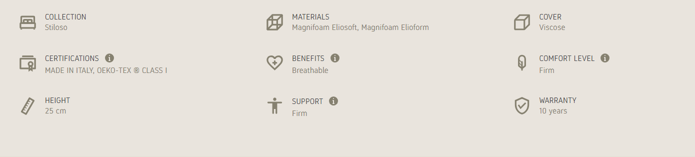 Stiloso 10 of the Stiloso line is the ideal mattress for those seeking a firm support without compromising comfort. All at 25 cm of height.