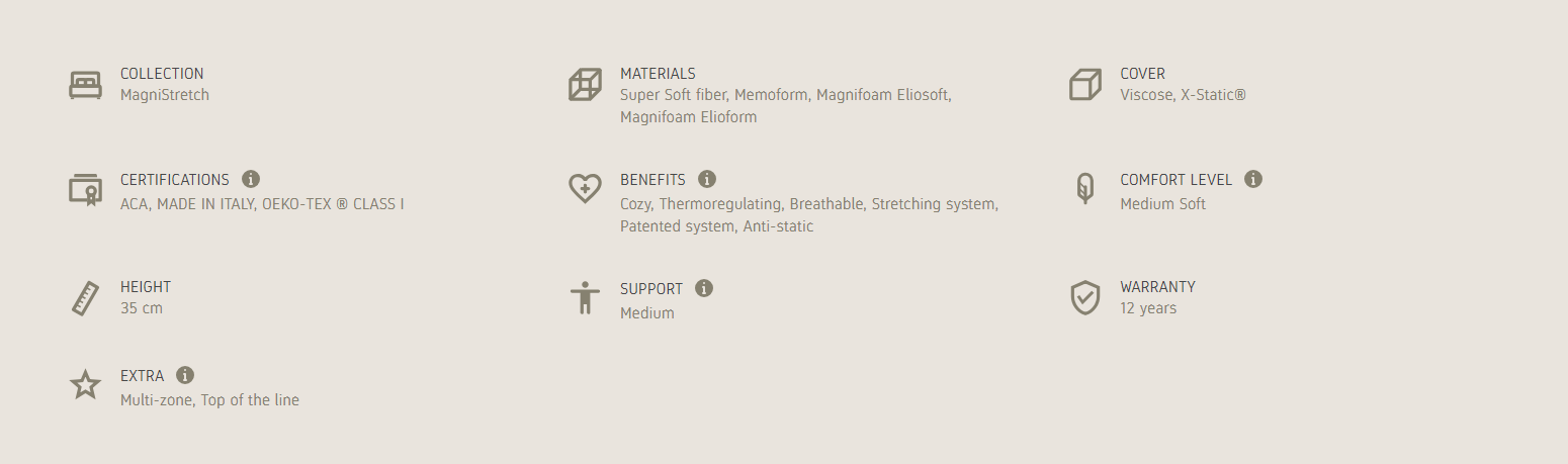 The technological and innovative mattress that guarantees outstanding benefits for your spine, thanks to the stretching and decompressing action while you sleep. A mattress that is comfortable, breathable, anti-static and that regulates the temperature, providing a medium support in 35 cm of height。