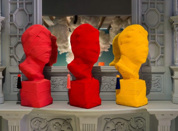 在每一段古老的西方文明史上,雄偉的雕像與精湛的藝術(shù)品被作為紀念和傳世那些英雄人物的媒介。THIS IS NOT A SELF PORTRAIT挑戰(zhàn)傳統(tǒng),通過繃帶將英雄人物的面孔遮掩住,從而營造出一種讓人玩味的氛圍。同時,懸掛著的中國結(jié)增添了東方色彩,象征了重新演繹西方藝術(shù)的概念。每一件作品都是手工制作,為所處空間增添一抹獨特的點睛之筆。