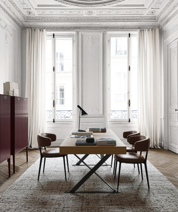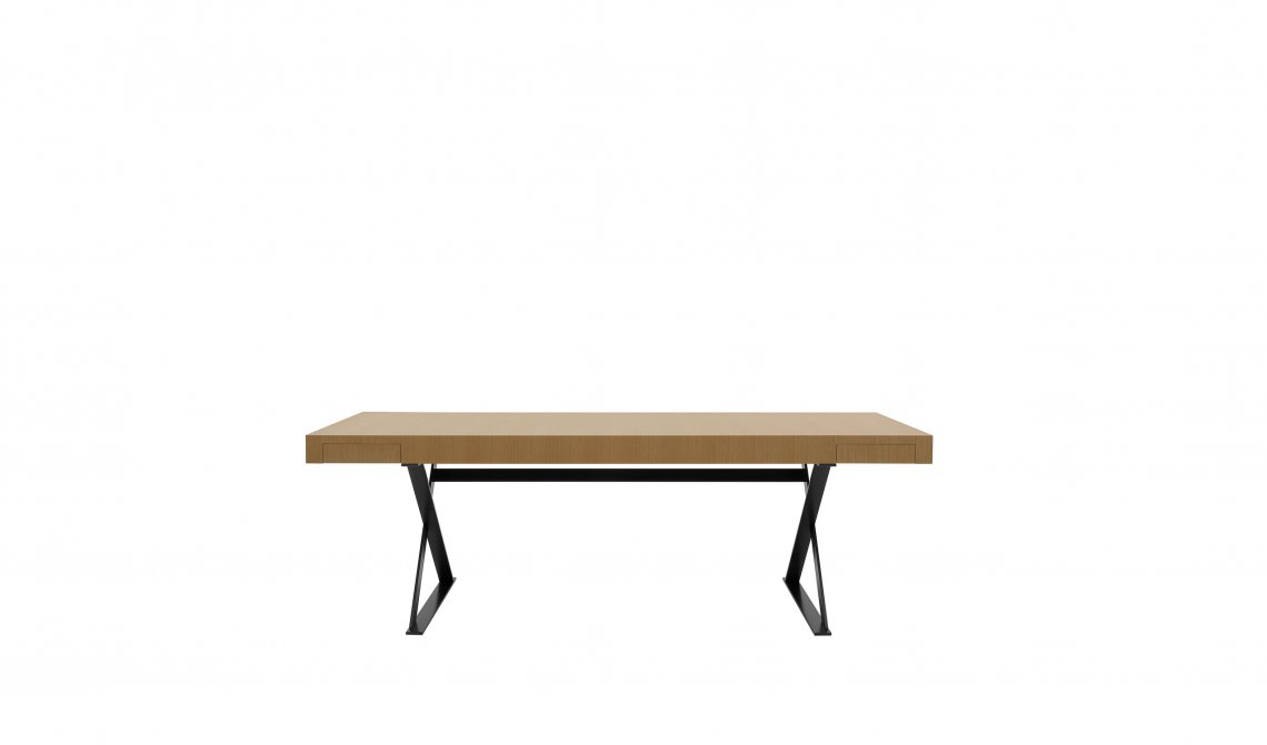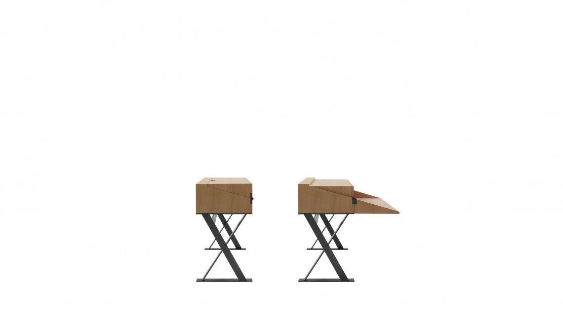A writing desk reminiscent of a classic bureau with a contemporary twist, Max is a small jewel of the cabinet-maker’s art. It stands out due to its extraordinary attention to detail, making it a precious treasure chest. The main features of this flip-top desk are the special X-shaped design of the steel structure and the geometric design of the drawers. The desk comes in one size in various wood finishes.