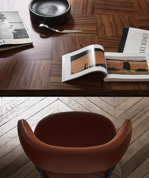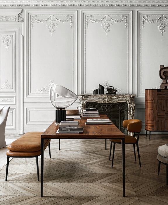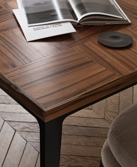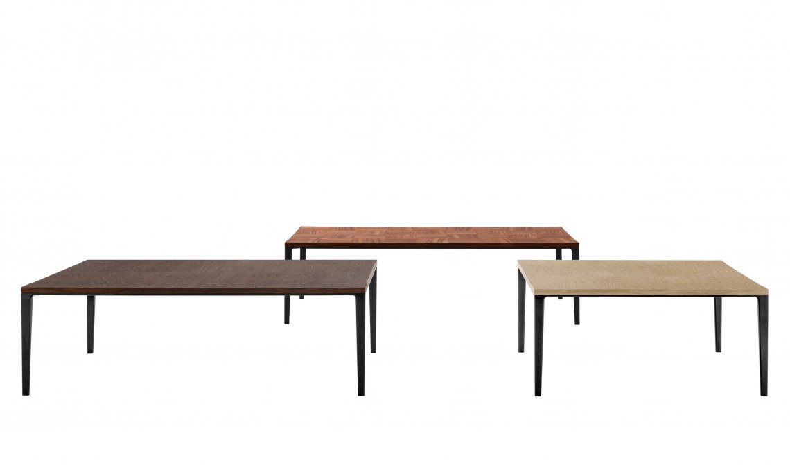 The Alcor dining tables are characterised by a rigorous aesthetic and precious wooden tops with a striking inlaid chequered pattern, reflecting Maxalto’s excellent craftsmanship. Available in three versions, two rectangular and one square, they come with a painted aluminium frame and tops in various woods and finishes. The series also includes small tables, storage units and sideboards.