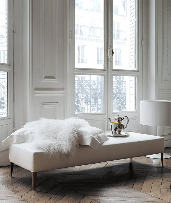 Conceived both as a top and as a seat, the Filemone padded bench can be upholstered in leather or fabric and comes with feet in metal or in a variety of wood essences, to adapt to any furnishing style.