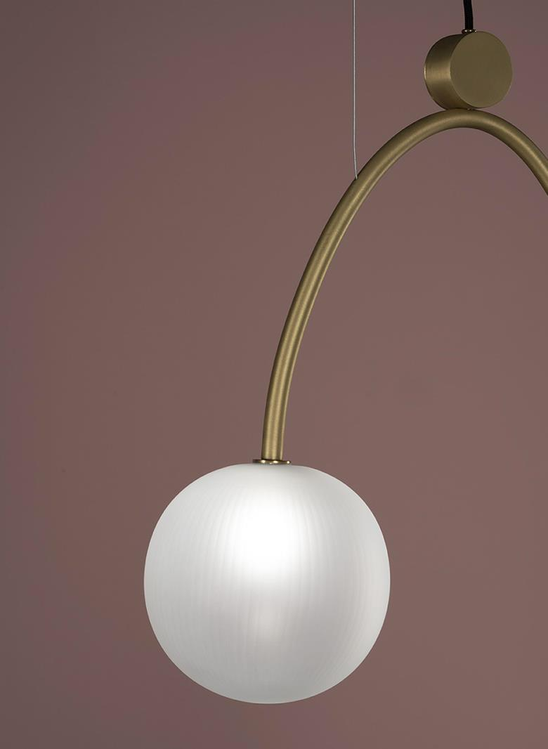 Suspension lamp. Hand blown titanium metallized glass dome with internal frosted bubble glass sculpture.