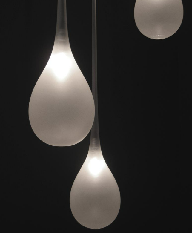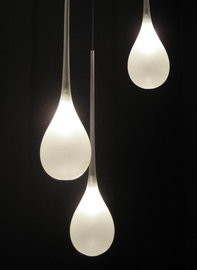 Suspension lamp. Hand blown titanium metallized glass dome with internal frosted bubble glass sculpture.