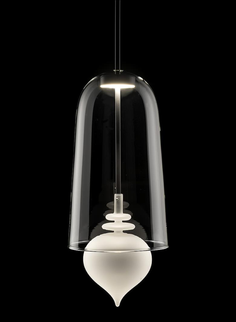 Suspension lamp. Hand blown titanium metallized glass dome with internal frosted bubble glass sculpture.
