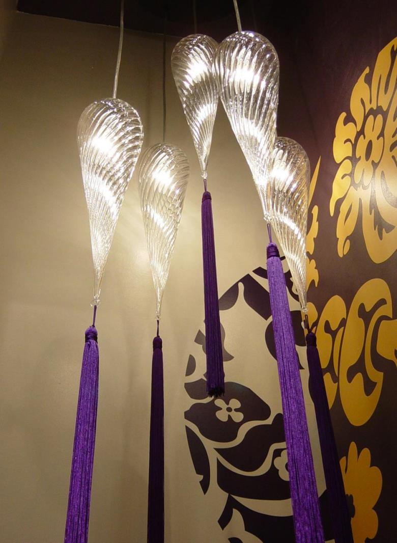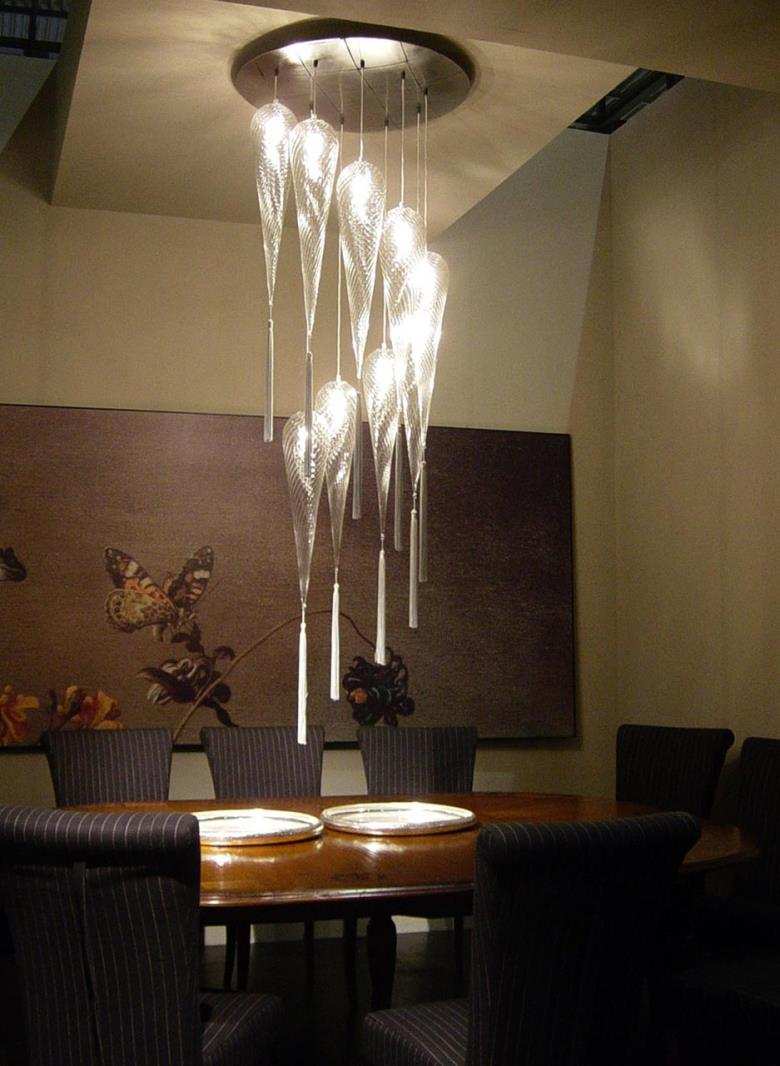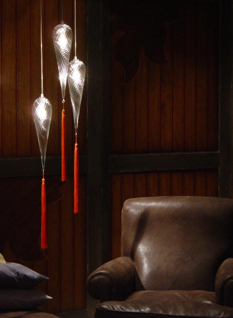 Suspension lamp. Hand blown titanium metallized glass dome with internal frosted bubble glass sculpture.