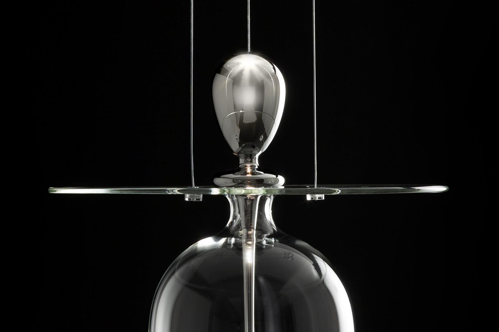 Suspension lamp. Hand blown titanium metallized glass dome with internal frosted bubble glass sculpture.