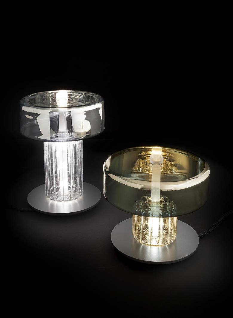 Suspension lamp. Hand blown titanium metallized glass dome with internal frosted bubble glass sculpture.