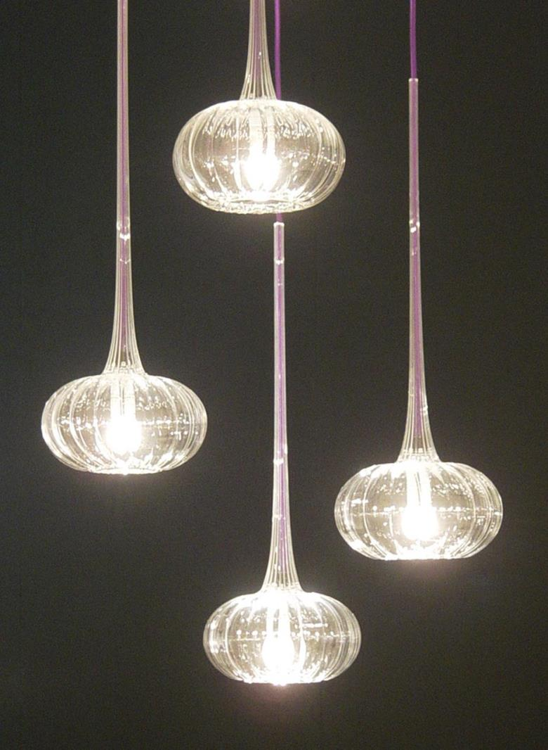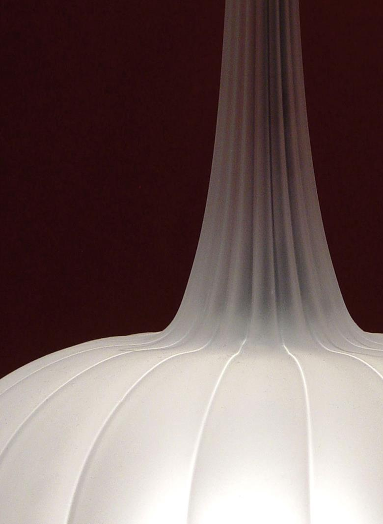 Suspension lamp. Hand blown titanium metallized glass dome with internal frosted bubble glass sculpture.