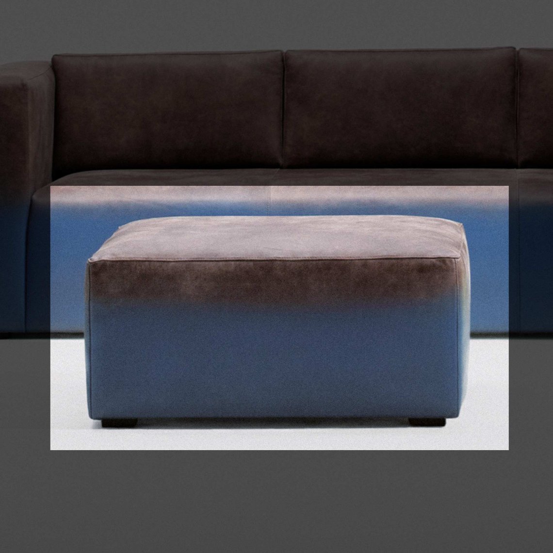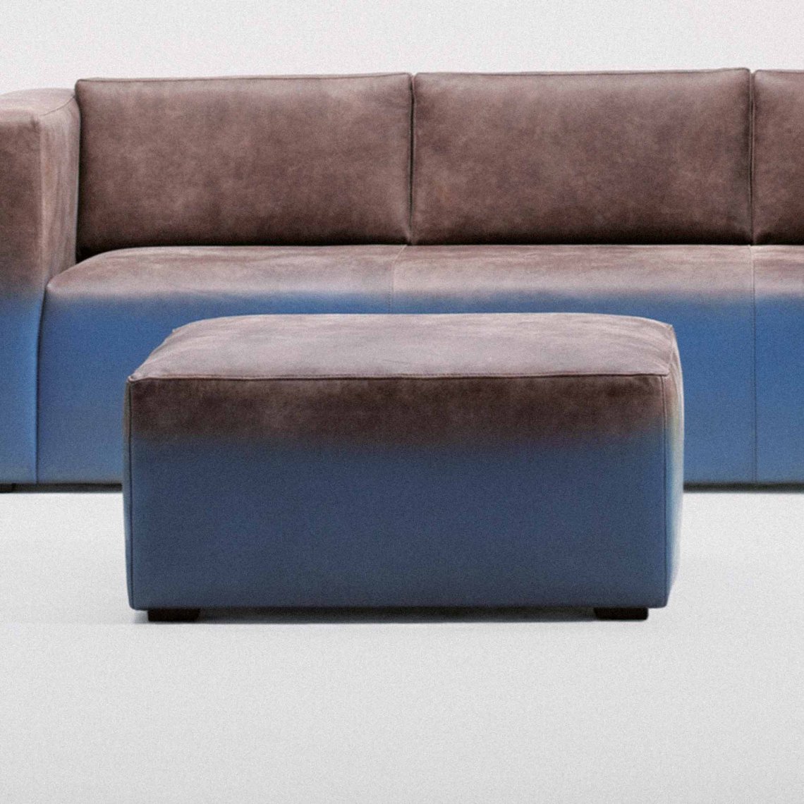 Pouf made of memory-foam with leather covering and varnish colour gradation.