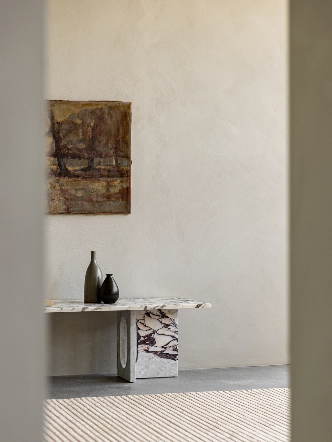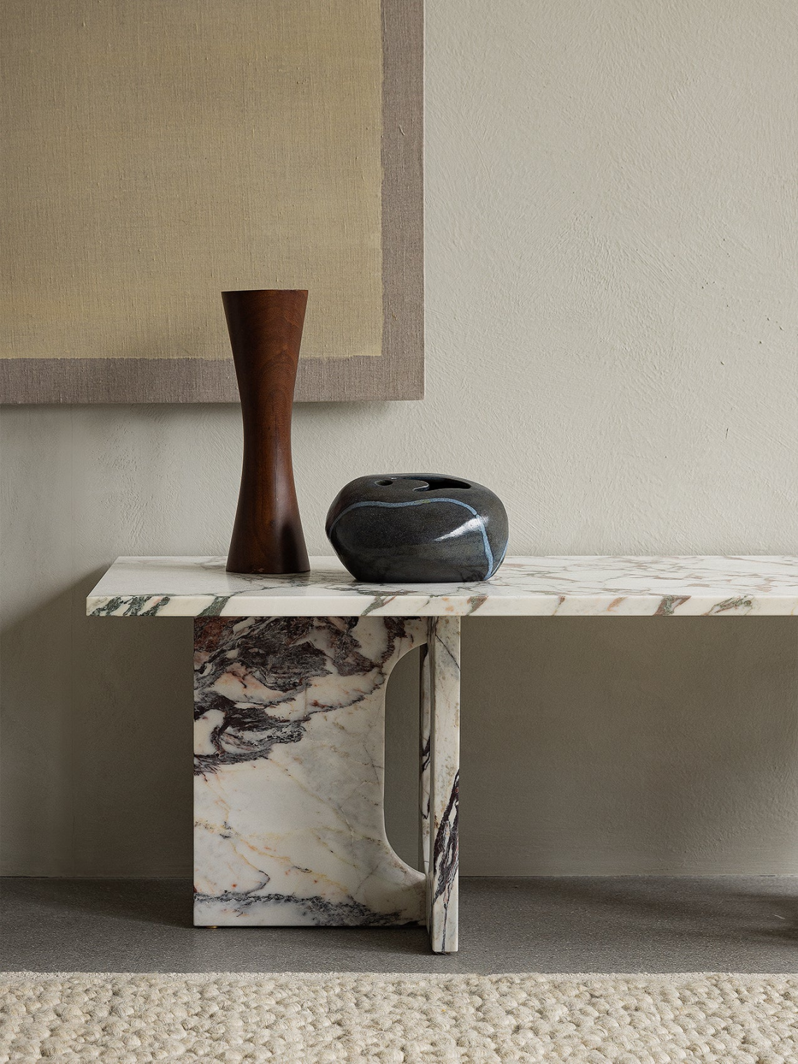 The Androgyne Lounge Table, now available in Calacatta Viola marble, is a striking centrepiece in classic and modern spaces alike. Sourced in Italy, the off-white marble’s characteristic purple veining and natural inclusions create beautifully unique surface patterns that add dimension to the design.