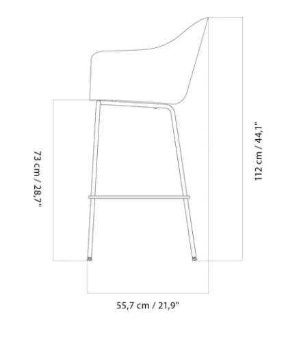 Whether you love to eat, work and hang out at the countertop bar, or prefer the elevation of the high top, the new bar and counter versions invite you to pull right up. The slender and sculptural geometric bases are designed with a comfy crossbar for the feet at just the right height to prolong comfort and keep your posture in top form. The bases are available in black powder coated steel. MENU offers various Harbour counter/bar Chair variants available for expedited delivery.