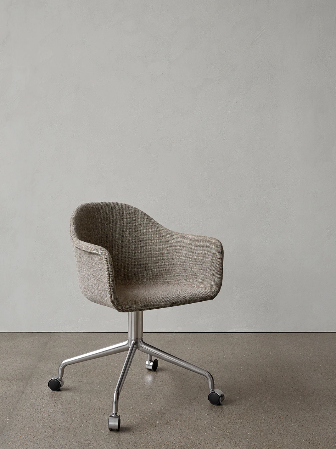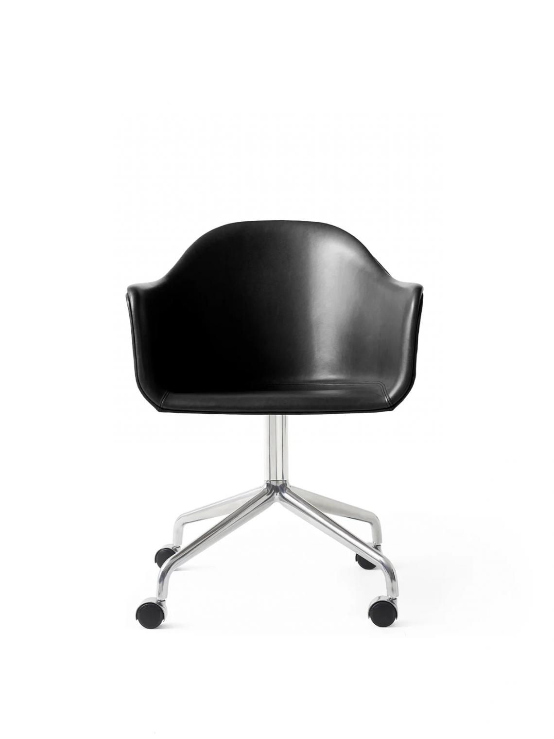 Once you’ve chosen the Harbour Chair shell style that will be cradling and supporting your body, you can now also choose a clover-shaped swivel base so you can spin around as needed – and roll around as wanted, should you opt for caster wheels. The base is available with either swivel or swivel with return options in two finishes – polished aluminum or powder-coated aluminum in black.