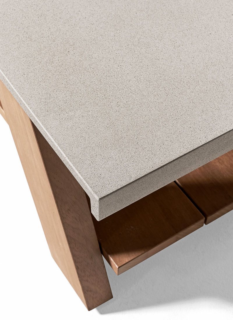 獻給那些喜歡材料本質之美的人們:伊羅科實木和混凝土通過Joi Open Air變得栩栩如生. Joi Open Air匯集了不同大小的矩形桌子和方形邊桌,線條清晰。桌面專為戶外使用而設計,采用Ductal?混凝土制成,這是一種最高品質的材料,及其精細的天然礦物成分和有機纖維的組成,使其具有柔韌性。 淺灰色的飾面使Joi Open Air成為現代和城市舞臺的理想之選。
