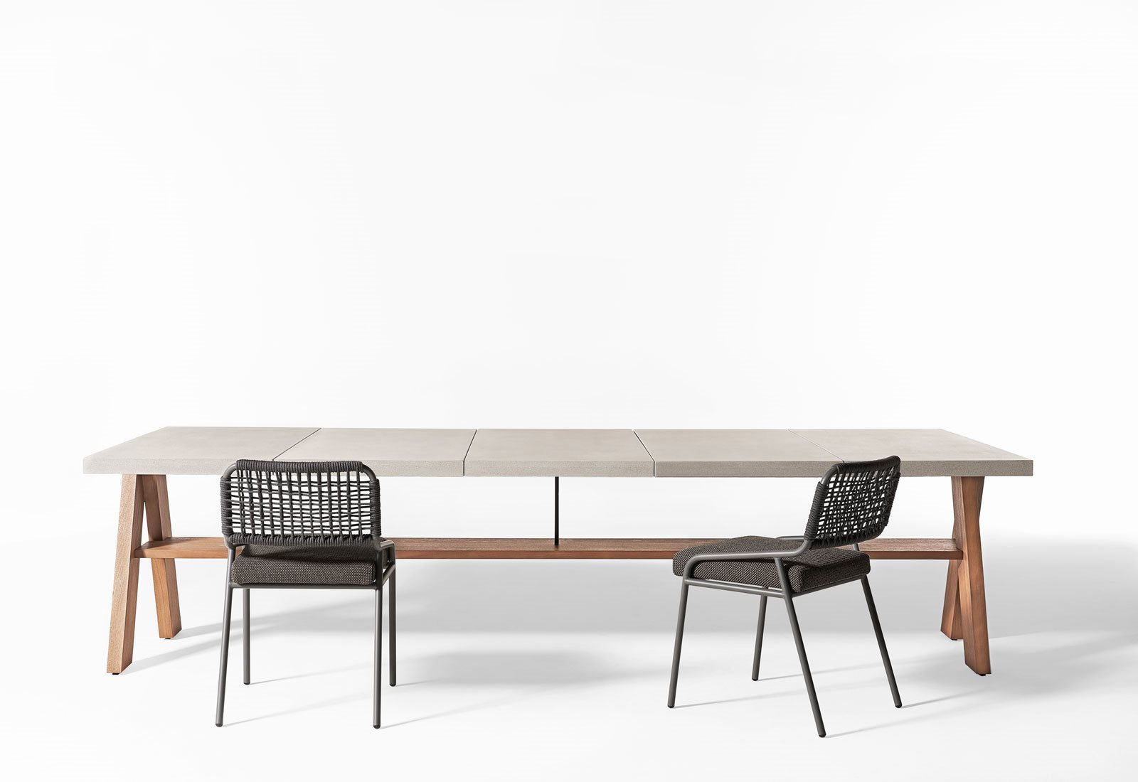 獻給那些喜歡材料本質之美的人們:伊羅科實木和混凝土通過Joi Open Air變得栩栩如生. Joi Open Air匯集了不同大小的矩形桌子和方形邊桌,線條清晰。桌面專為戶外使用而設計,采用Ductal?混凝土制成,這是一種最高品質的材料,及其精細的天然礦物成分和有機纖維的組成,使其具有柔韌性。 淺灰色的飾面使Joi Open Air成為現代和城市舞臺的理想之選。
