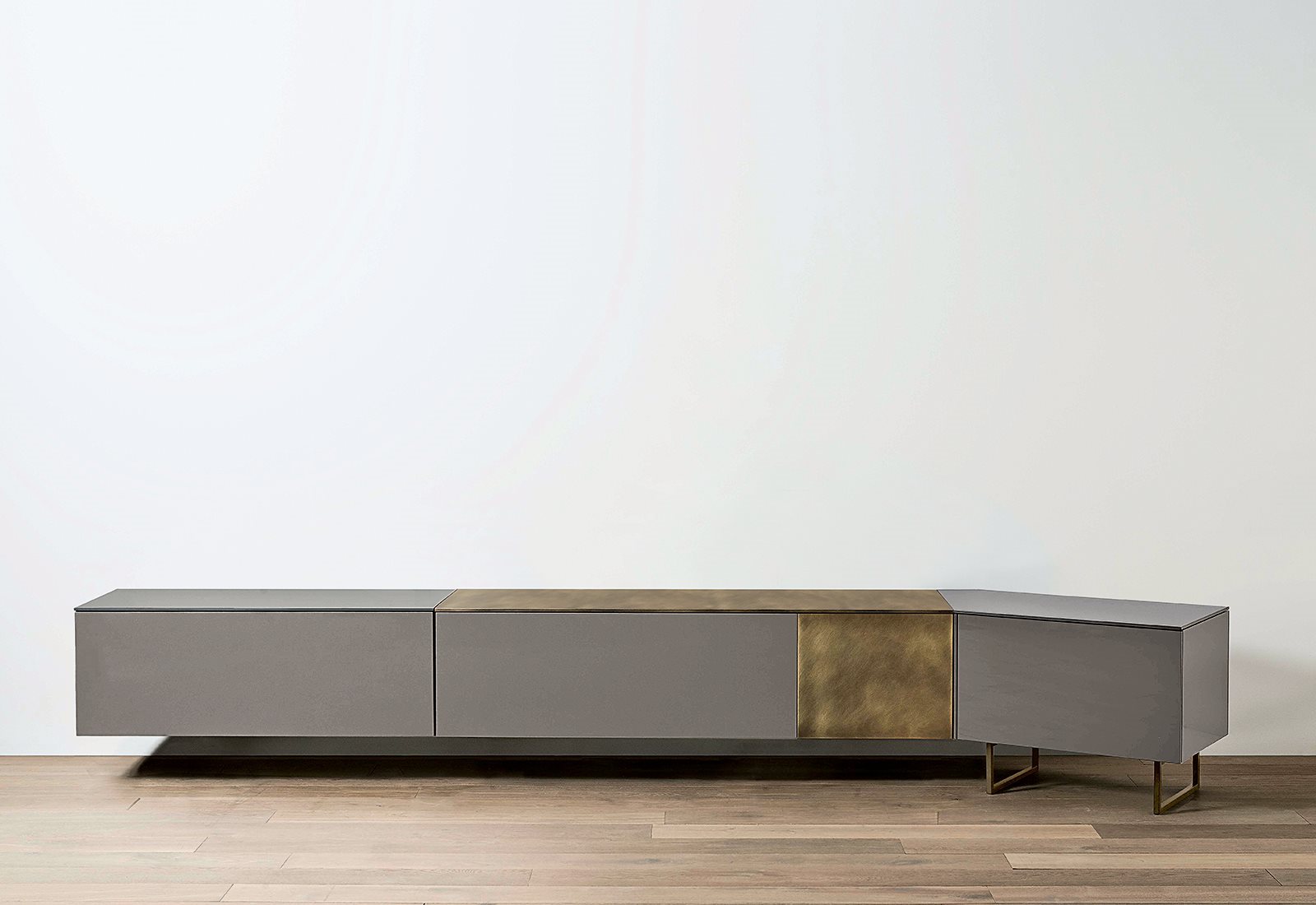一系列以純線條為特征的壁掛式模塊化單元,結合多種飾面:敞開式隔間,抽屜和落葉門等可以呈現多種形式,分割性和包含性,進而配合木材,烤漆,銅和大理石面板非常具有靈活性和多樣的組合性。