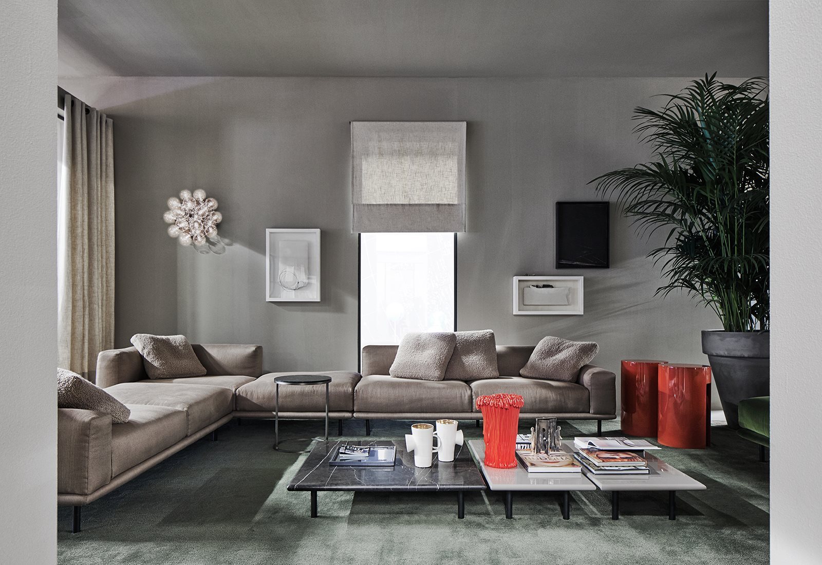 沙發以優雅的比例,柔軟的墊子和幾何線條為特色