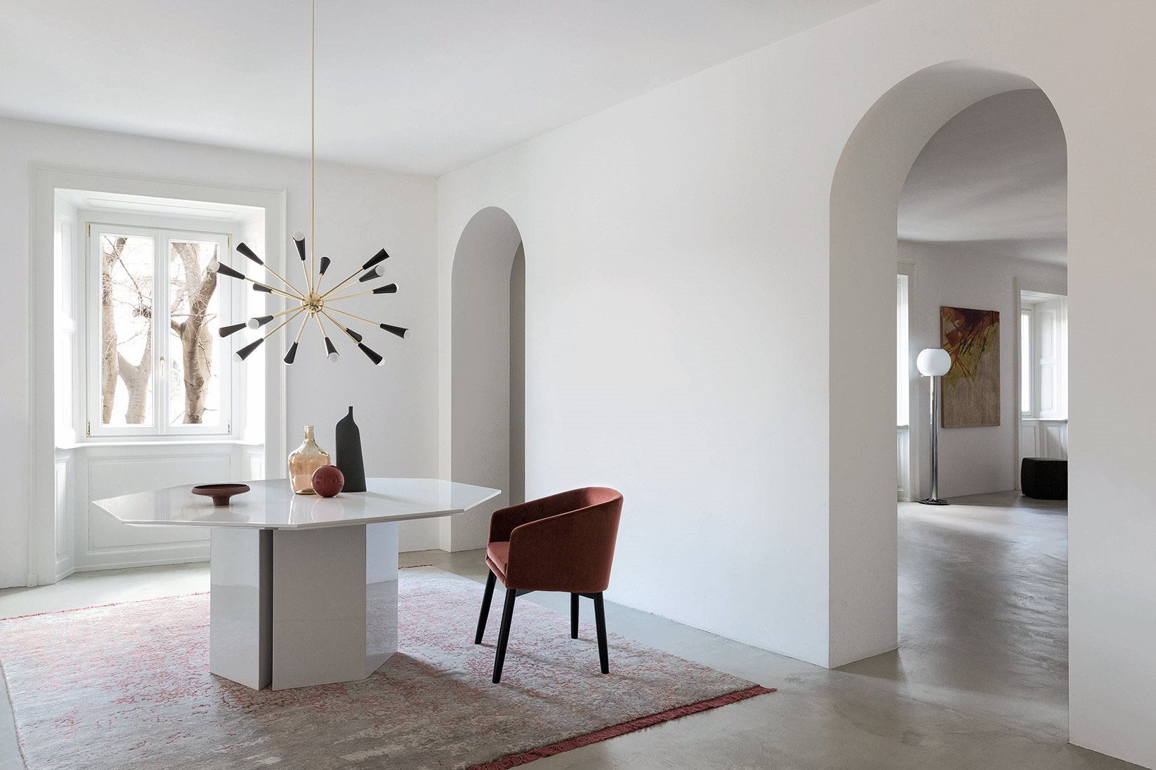 金屬底座的餐桌。 有不同型號和尺寸的臺面