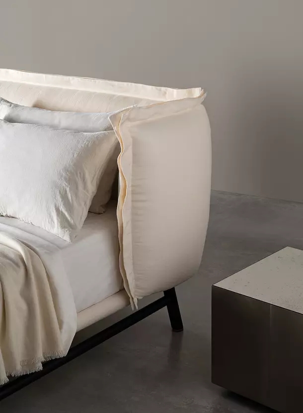 手工藝與獨(dú)特的剪裁方法是Edoardo床的特色。這張床的特點(diǎn)是實(shí)木結(jié)構(gòu)的簡易與床頭版的體積之間的對比。 床頭板有三個(gè)版本:每個(gè)版本都有自己的個(gè)性。第一個(gè)版本的特點(diǎn)是其織物覆蓋的軟墊和其精密輪廓,這使得它看起來絕對精致。第二個(gè)版本通過柔軟的外觀使人放松,平直的褶邊展現(xiàn)了熱情的誘惑。