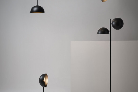 structure to which two adjustable lampshades are anchored. The lamp