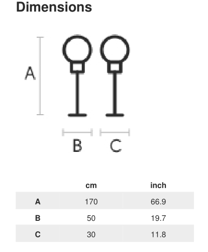 has a length of 2 m (78,74 in) and is covered in black silk.